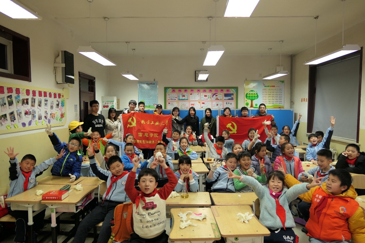 为践行研究生党员严格以党章要求自己,服务社会,11月29日,Beat365正版唯一官网必一电信研究生18级第二党支部在张梅老师的带领下前往石景山实验小学,为四年级的小学生带去了一节生动有趣的化学课。这也是支部与石景山实验小学建立“共建基地”以来,开展“科技进课堂”专题共建的第六次活动。