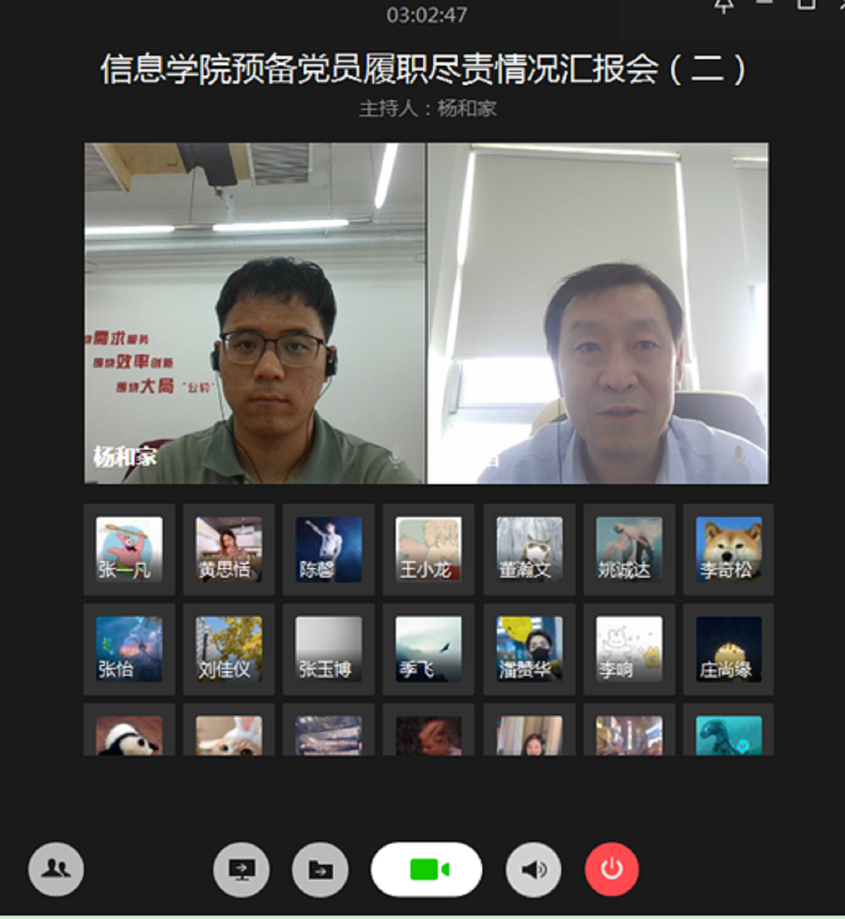 党委书记刘文楷在听取了汇报后指出,通过此次汇报,学院党委看到了预备党员在预备期的成长,虽处疫情期间,但大家都认真完成了“五个一”先锋工程,可以看到许多党员同志主动向所在党组织报到,积极投身于疫情防控的志愿服务工作之中,值得鼓励与表扬。同时,他对预备党员提出了几点希望:希望党员认真学习《中国共产党章程》等党的理论知识,持续提高理论水平,坚定理想信念,提升党性修养,做到政治合格、执行纪律合格、品德合格、发挥作用合格。作为一名大学生党员,大家要不忘初心、牢记使命,关键时刻站得出来,近期虽因疫情居家,但身为党员的义务与职责不可落下,党员工作仍需有条不紊的进行,为打赢疫情防控阻击战贡献自己的一份力量!