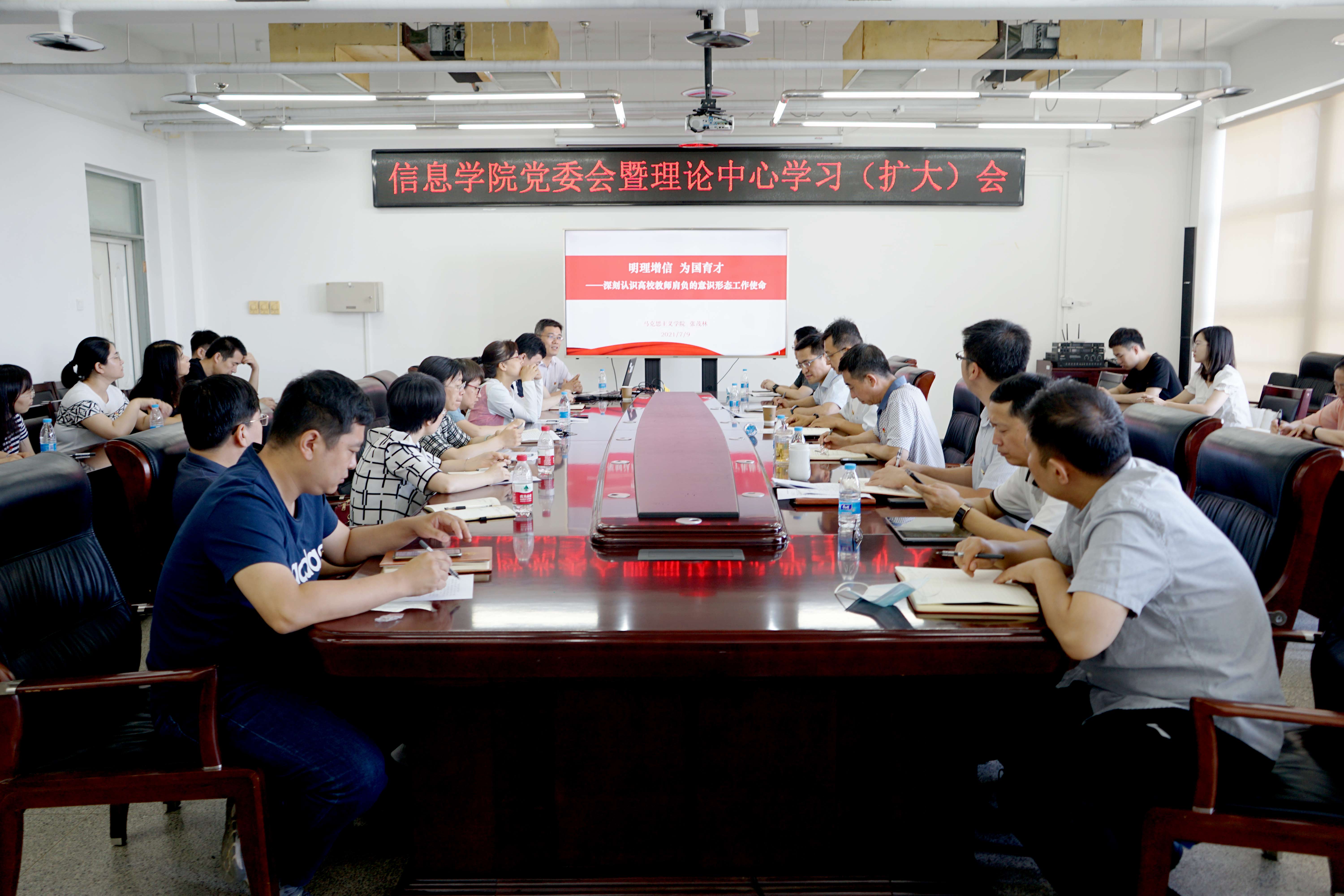 王月海、赵帅同志分别谈了学习体会。王月海指出,茂林同志结合史料,放眼全球,从三个层面给大家上了一堂非常有感染力的意识形态专题党课。他希望广大教师加强对于意识形态工作的警觉性,密切关注学生暑期实践活动。面对意识形态多元化新形势下带来的复杂性问题,要迎难而上,耐心细致开展工作。在思想上要提高认识,对发现的问题及时汇报;同时要强化责任意识,知责尽责,与思政课同频共振,画好同心圆。赵帅谈到,茂林同志的报告是一场思想上的及时雨,为老师们浇注了“为党育人,为国育才”过程中的精神养分。意识形态工作贯穿三全育人全过程,全体教师要在关键时刻、特别是在一些大是大非面前,严把意识形态领域关,及时传递正能量给学生,帮助学生走出思想误区,树立正确的价值观。