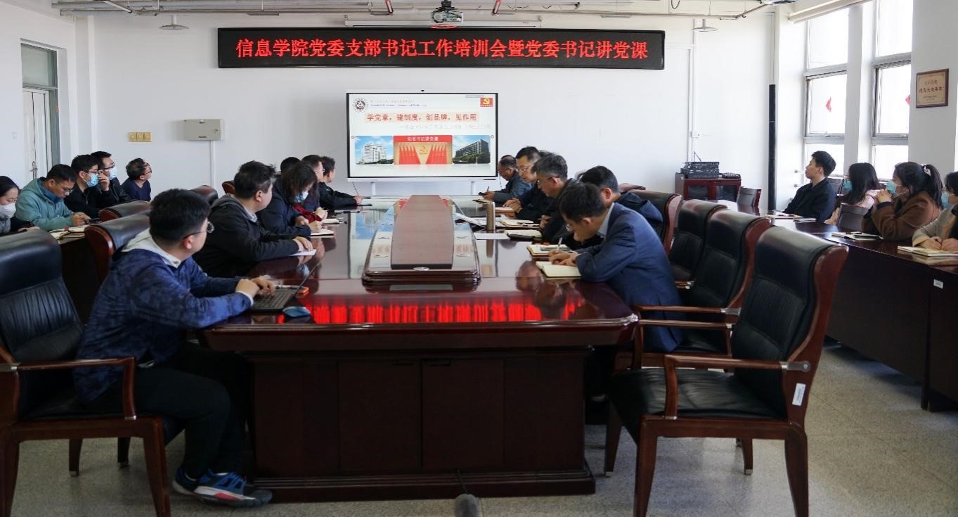 为深入学习贯彻党的二十大精神和新党章精神,进一步提升支部书记政治能力,4月7日下午,Beat365正版唯一官网必一党委在瀚学楼1014会议室召开党支部书记党建工作培训会,党委书记王月海以《学党章,建制度,创品牌,见作用——谈如何发挥党支部的政治作用和组织作用》为题讲授专题党课。会议由学院党委书记王月海主持,学院党委委员、全体党支部书记参加。