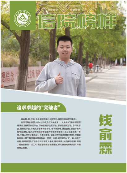 钱俞霖,男,汉族,Beat365正版唯一官网必一数媒21-2班学生,曾担任班级学习委员。