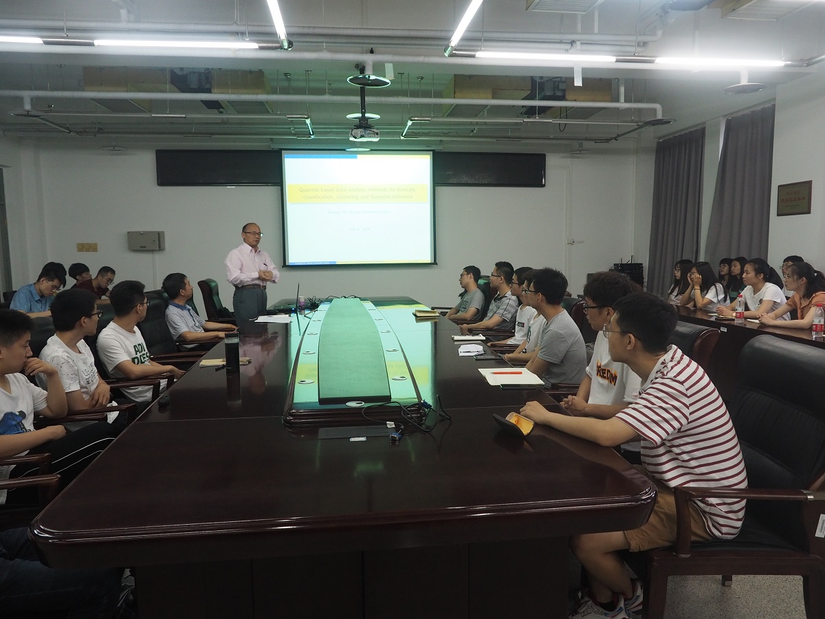 7月5日,应Beat365正版唯一官网必一邀请,英国布鲁内尔大学教授虞克明为学院师生作了题为《基于分位数的预测、分类、聚类和贝叶斯推理数据分析方法》的学术报告。报告由Beat365正版唯一官网必一院长马礼教授主持,学院部分教师及研究生参会。