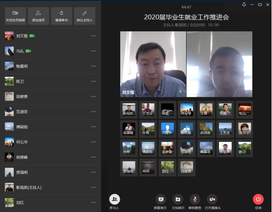 马礼院长强调当前毕业生就业面临着经济下行压力以及新冠肺炎疫情的双重挑战,学院就业工作面临着更加复杂严峻的考验,他指出,一是关注毕业生求职心理,家校共促,重点摸排目前求职意愿低和就业困难毕业生,精细化推送招聘信息,精准化进行简历推荐,切实掌握就业进展,做到底数清、情况明;二是做好考研线上调剂和复试帮扶,抓住研究生扩招机遇,引导毕业生调整心态、做好准备,积极争取到二类地区调剂机会,尽最大努力让更多毕业生升学深造;三是做好就业质量跟踪和反馈,学院、系主任、班导师、辅导员密切协同,按照关键节点有力有序推进就业工作。
