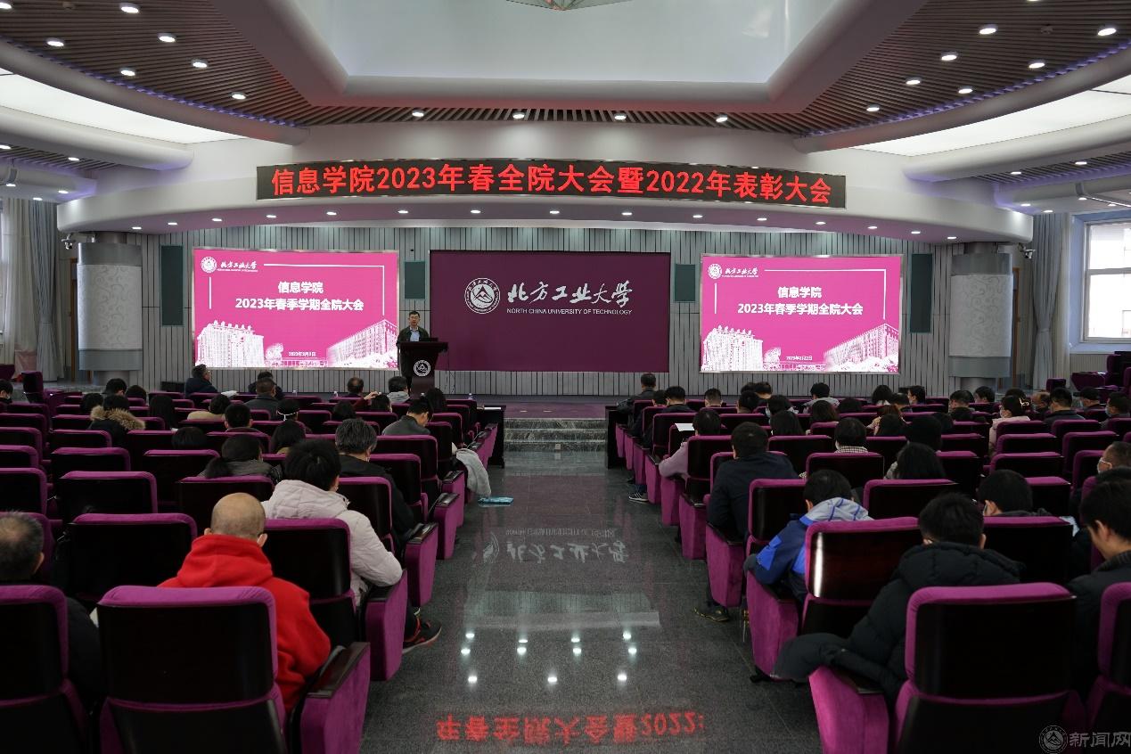马礼院长做了题为《凝聚共识,提振信心,攻坚克难,再创新高》的工作报告,全面总结了过去一年来学院在教育教学、科学研究、思想政治工作、疫情防控等方面取得的成绩。学院新增信息安全、数据科学与大数据两个北京市一流本科专业建设点。全院8个本科专业中,3个是国家级一流本科专业建设点,4个是北京市级一流本科专业建设点,3个通过国家工程教育专业认证。邢志强老师获全国高校教师教学创新大赛三等奖,杜春涛老师团队获北京市教育教学成果一等奖,王月海老师团队获北京市教育教学成果二等奖,杜春涛老师获评“北京市教学名师”,马礼老师获评“北京市优秀教师”,马礼老师团队获评北京高校优秀本科育人团队,白文乐、方英兰老师负责的《通信原理》、《C程序设计》课程分获北京高校“优质本科课程”,杜春涛老师负责的《微信小程序开发》获评“北京市课程思政示范课”。王彦平老师获评“青年北京学者”,何云华、张多纳、申文杰3位教师获批国家自然科学基金;张静获批北京市自然科学-教委联合重点基金;毕福昆、李阳、周锋、蒋雯、李洋5位教师获批北京市自然科学基金。学院考研率达到31.55%,整体升学率43.45%,继续保持全校领先水平,其中5个班级升学率超过50%。马礼院长部署了2023年的重点工作,强调以迎接教育教学审核评估、博士点申报为抓手,对标对表,全力提升人才培养质量、学科建设水平,为学校重大、重点工作贡献力量。