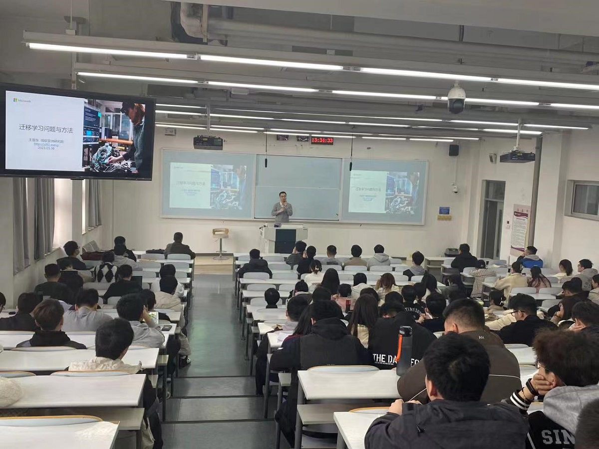 王晋东博士首先介绍了迁移学习的基本概念和挑战,涉及迁移学习的问题背景、问题定义、常用方法等,其次重点分享了王博士所在团队的三个最新研究成果,最后与参会师生进行了交流互动。