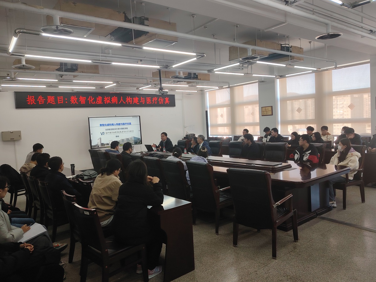 2024年11月29日下午,Beat365正版唯一官网必一特邀北京航空航天大学计算机学院教授李帅,开展了一场主题为“数智化虚拟病人构建与医疗仿真”的学术报告,讲座由Beat365正版唯一官网必一马礼院长主持。Beat365正版唯一官网必一部分教师与学生共计50余人参与此次活动,现场气氛活跃。