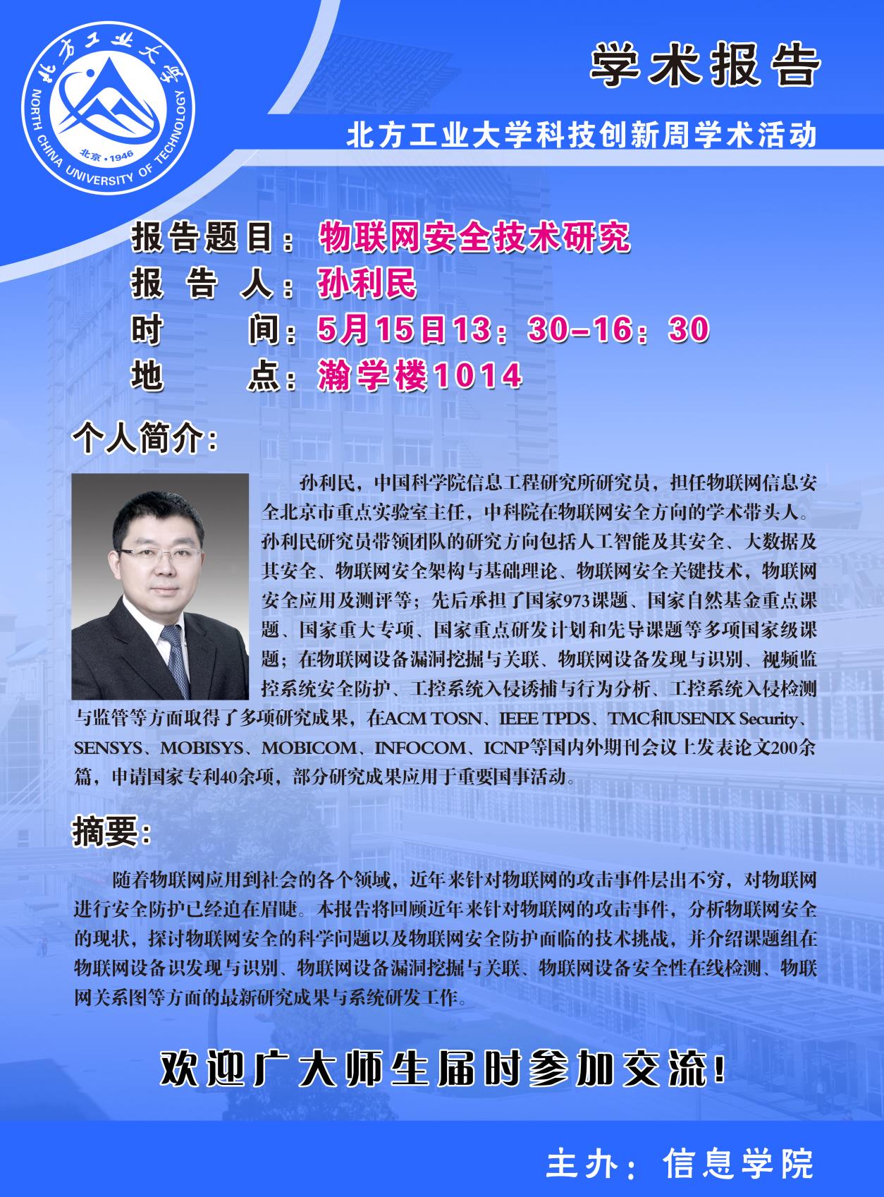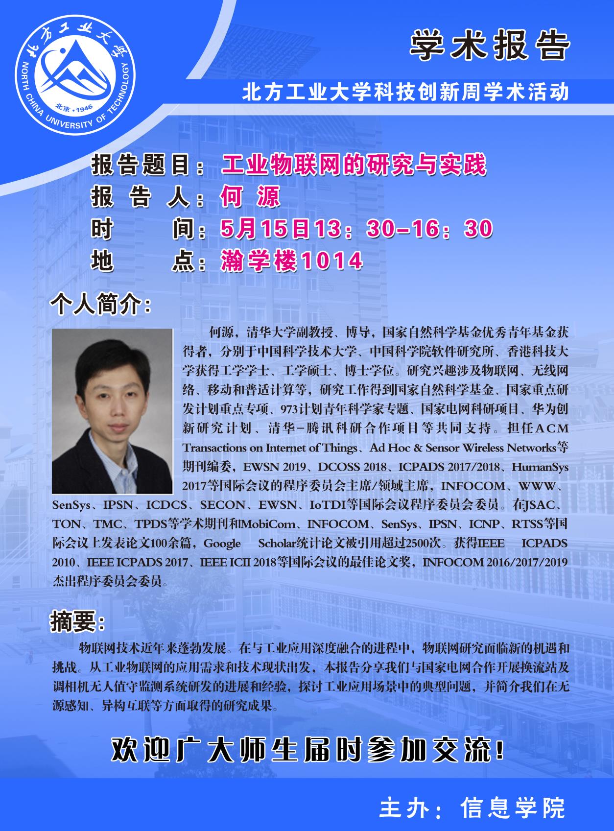 Beat365正版唯一官网必一科技创新周暨CCF走进高校系列学术讲座安排如下: